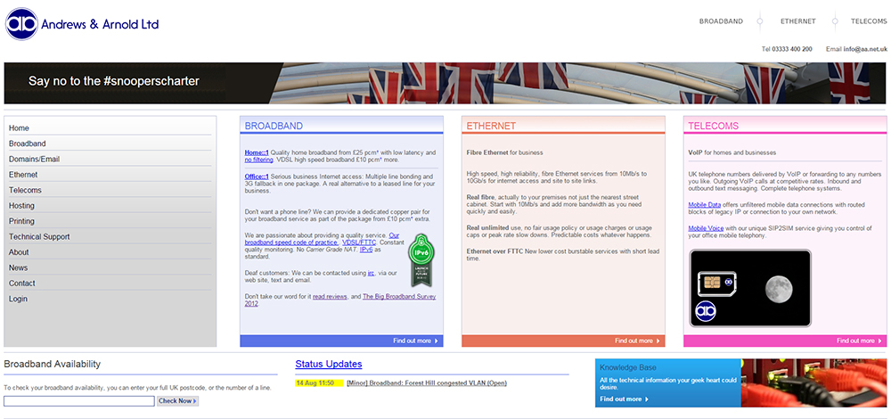 The fact that Andrews and Arnold knows enough about networking to build its own networking hardware is yet more evidence that its technical acumen is a notch above that of your average ISP and leaps and bounds beyond the average ISP's usual support team.