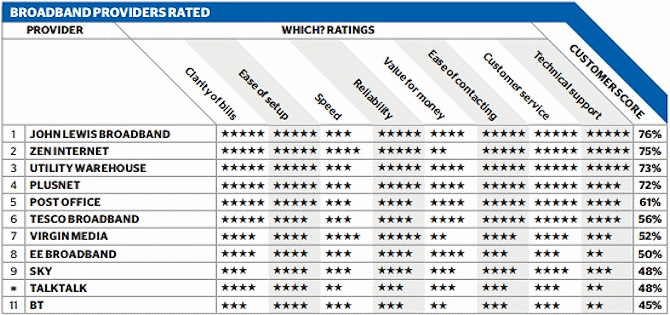In contrast, Britain's smaller ISPs like Plusnet (admittedly, a branch of BT), Zen Internet, Utility Warehouse and John Lewis Broadband, all have satisfaction levels over 70 per cent. In contrast, BT received just a 45 per cent approval rating, scoring two out of five stars on value for money and technical support. TalkTalk received similarly bad results, taking home two stars for speed and technical support and a customer satisfaction of just 48 per cent, according to The Telegraph.