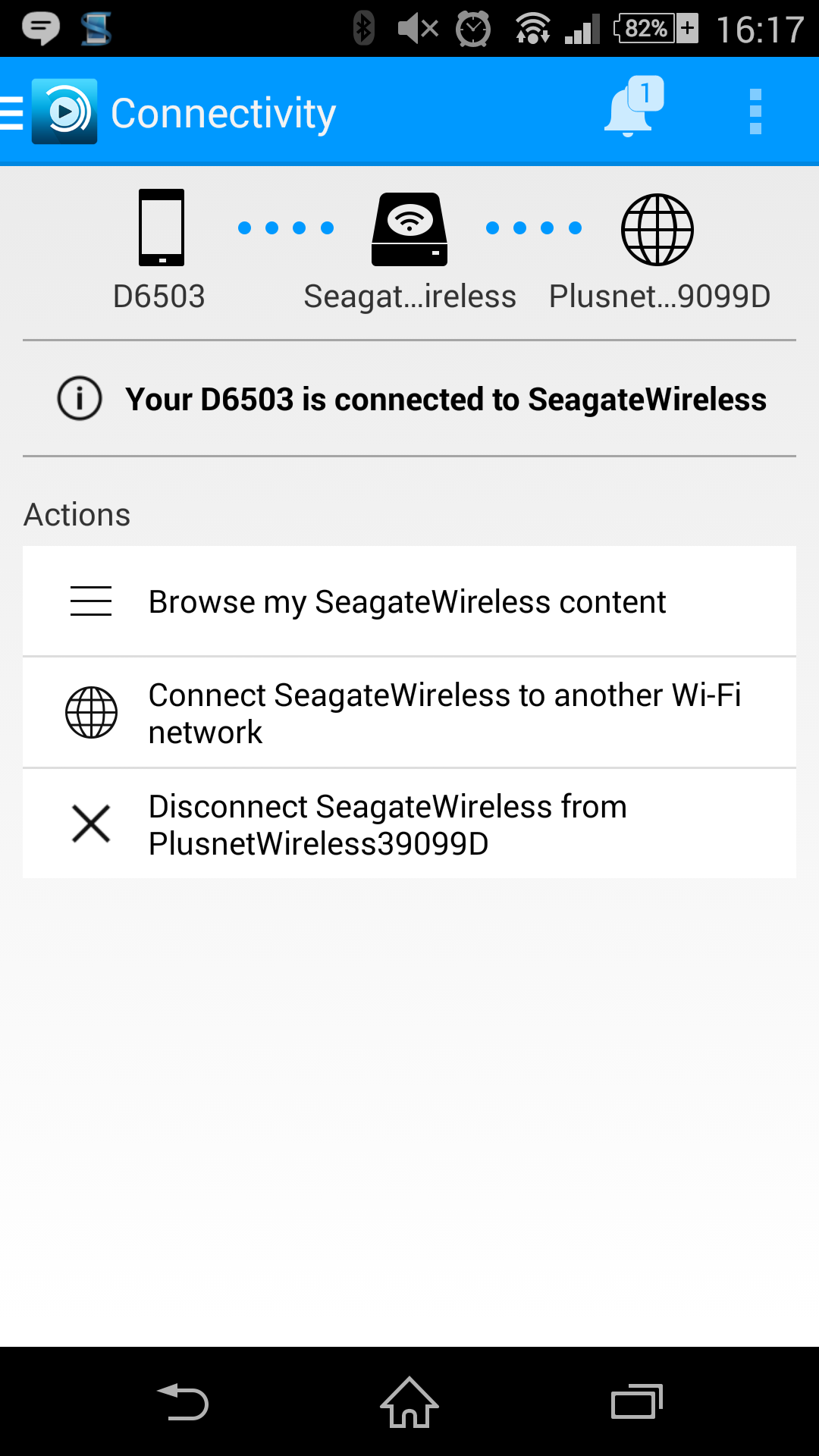 In an unrelated incident, I was also forced to reboot my phone when the Seagate app seemingly got stuck on using an external application to play media files, none of which it would play for some reason, despite having worked perfectly a few minutes before.