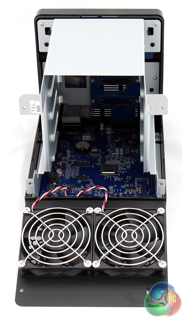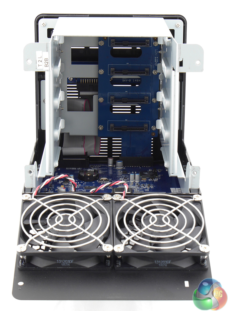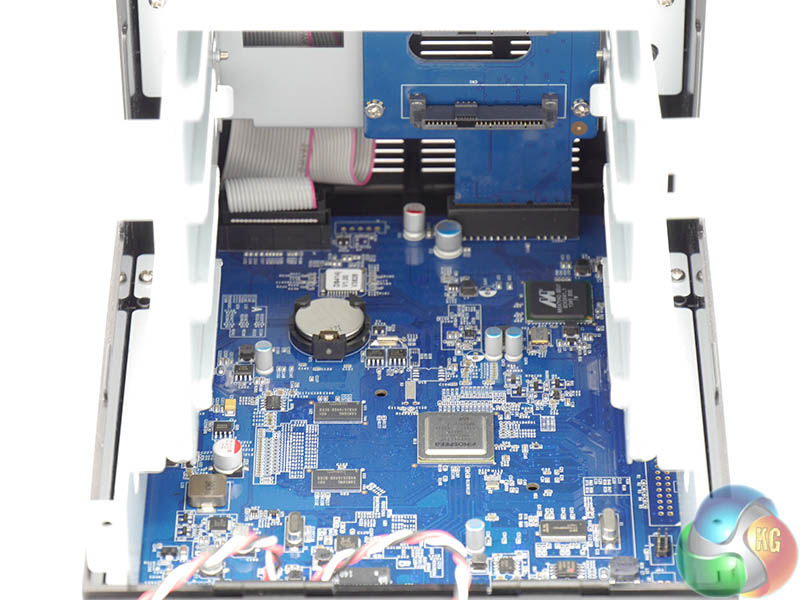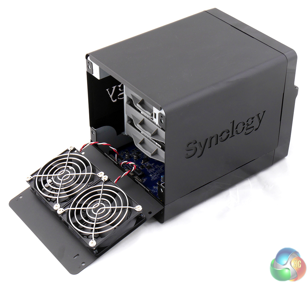 With the caddies removed from the DS414j you are pretty much left with a small motherboard sitting inside a basic steel box.