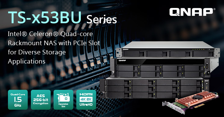 Speaking about the latest NAS series, QUNAP’s Dan Lin said: “The TS-x53BU secures data with a complete backup solution while providing high performance and expandability. The PCIe slot satisfies a variety of business demands with functional expansion options including SSD caching or 10GbE connectivity”.