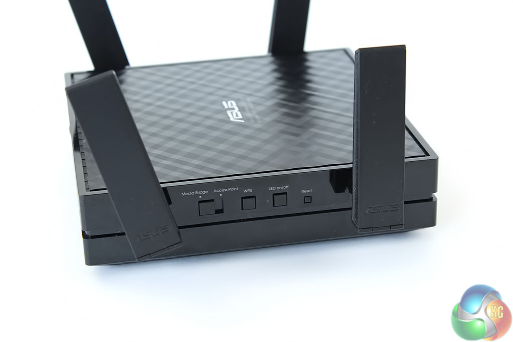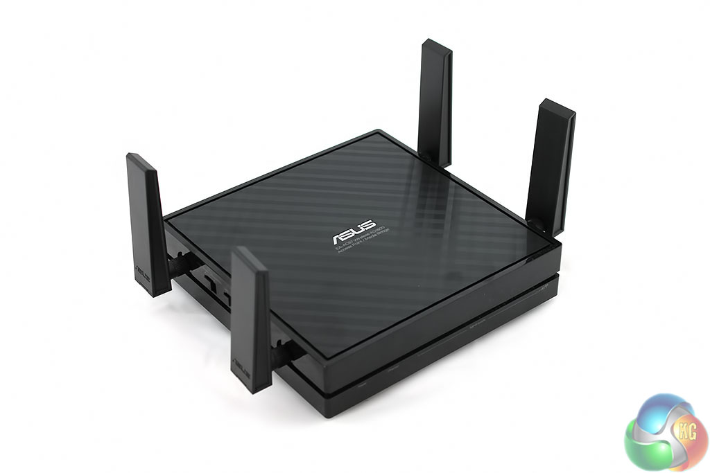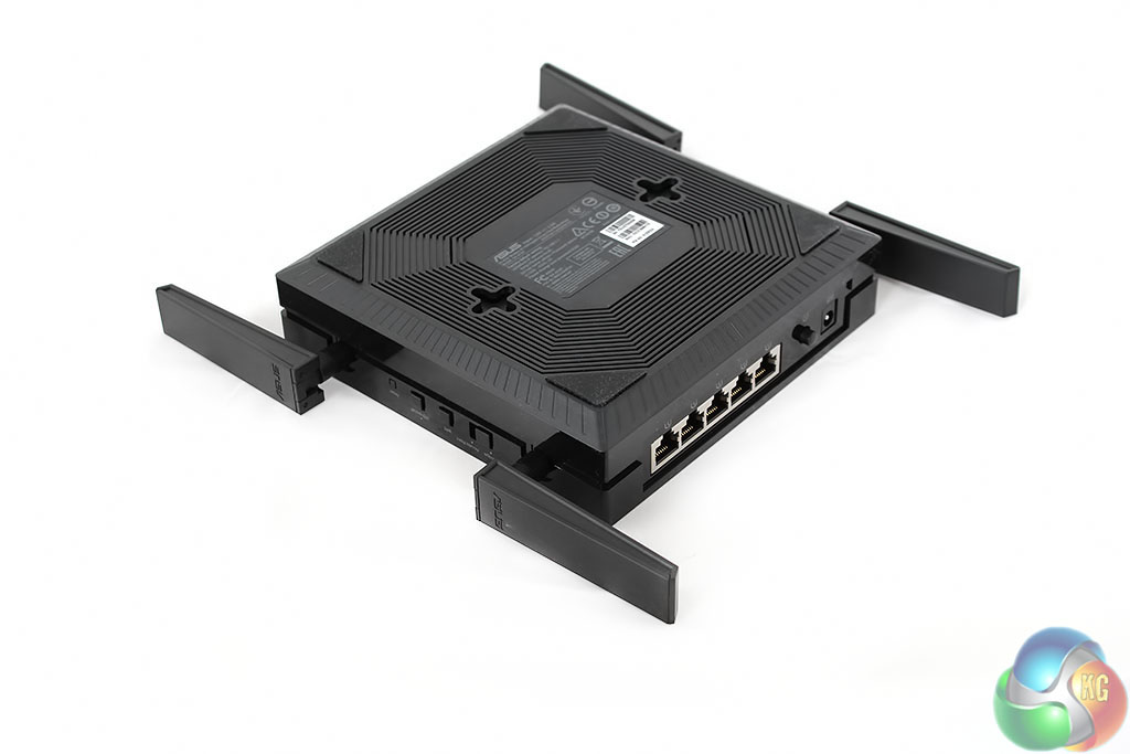 The package contains the unit itself, with the antennas supplied separately. It has the familiar Asus checkered pattern on the top, with a perfectly square design. There’s also a quick-start guide and warranty information, with a power adapter (not pictured).