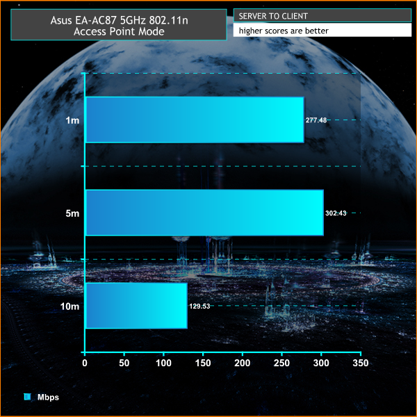 The client-to-server 5GHz 802.11n results aren’t quite as impressive, but the server-to client results are very good.