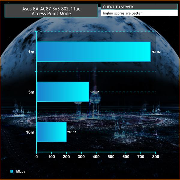 These 802.11ac results are superb, with some record-breaking performance when used with the Asus RT-AC87U. Even 3×3 mode is particularly fast.