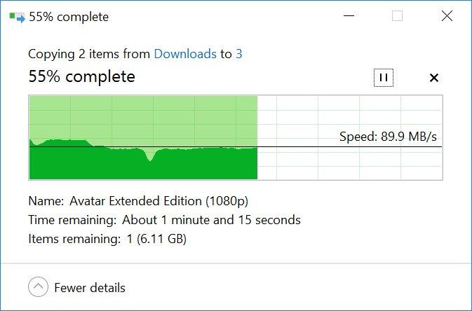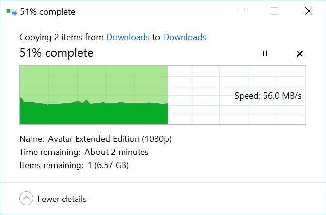 As we explained above, there is clearly some bottlenecking going on. It’s unlikely to be either of the SSDs in the PCs, which can transfer data much quicker than this, but is roughly around the real-world limit of Gigabit Ethernet. That’s quite incredible to think wireless speeds now eclipse wired.