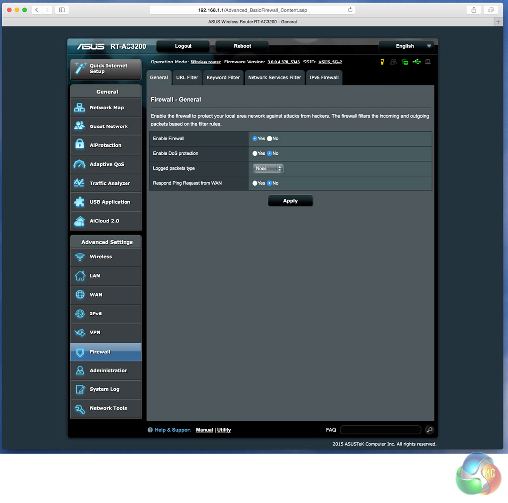 As are the Firewall settings, with a URL and keyword filter, useful for network administrators.