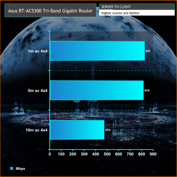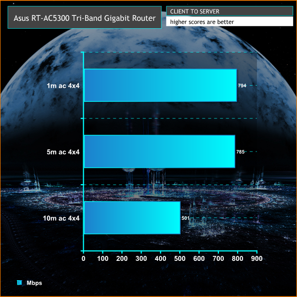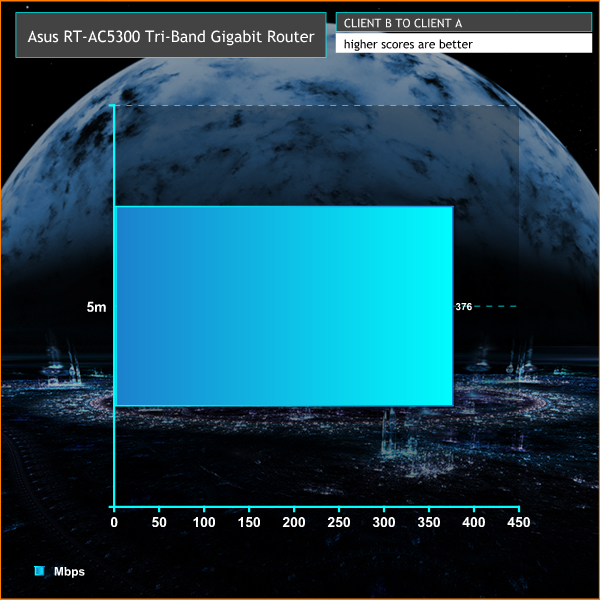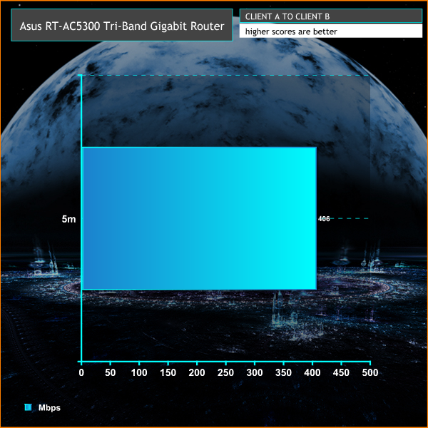 Given that the use of bridges and access points is one of the potential uses of the RT-AC5300, client-to-client transfer speeds are important to the Asus RT-AC5300.