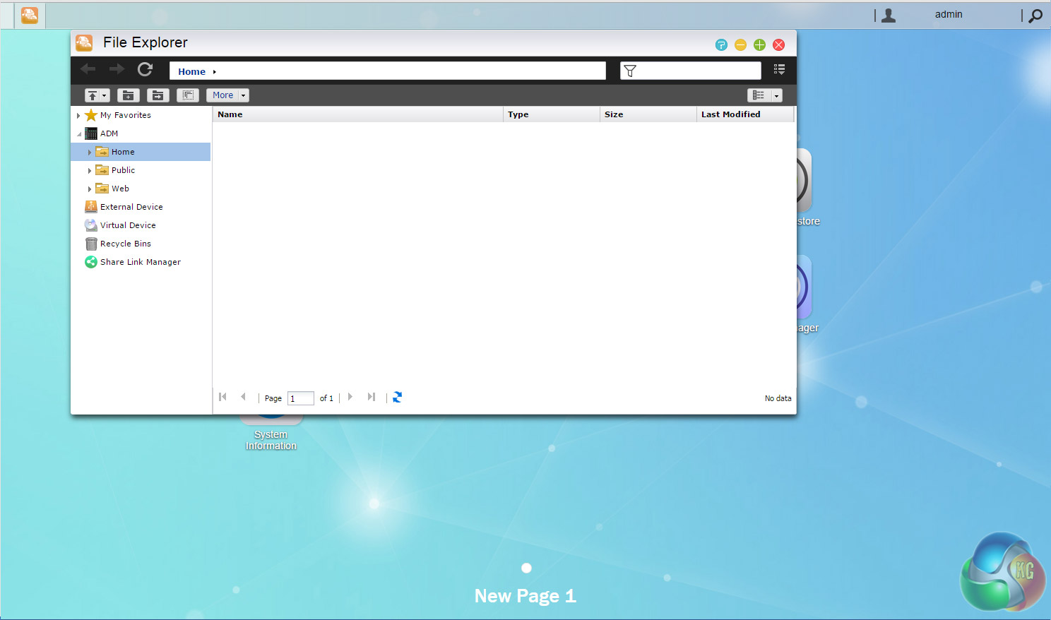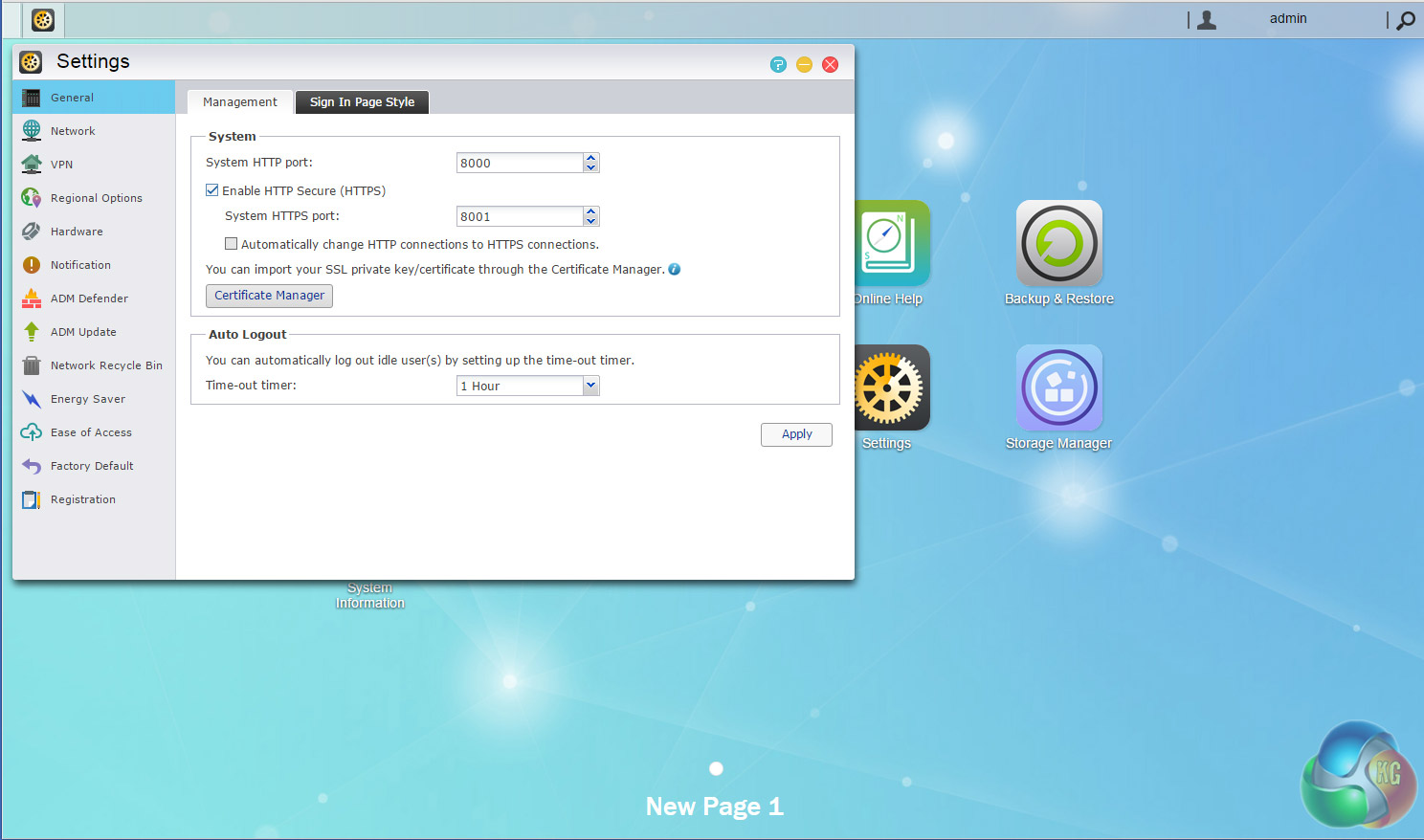 The main ADM page shows the major sections of the OS. For speed, it might be handier to have some form of side menu on this main page as all the other section pages have to help you get to what you are looking for a wee bit quicker.