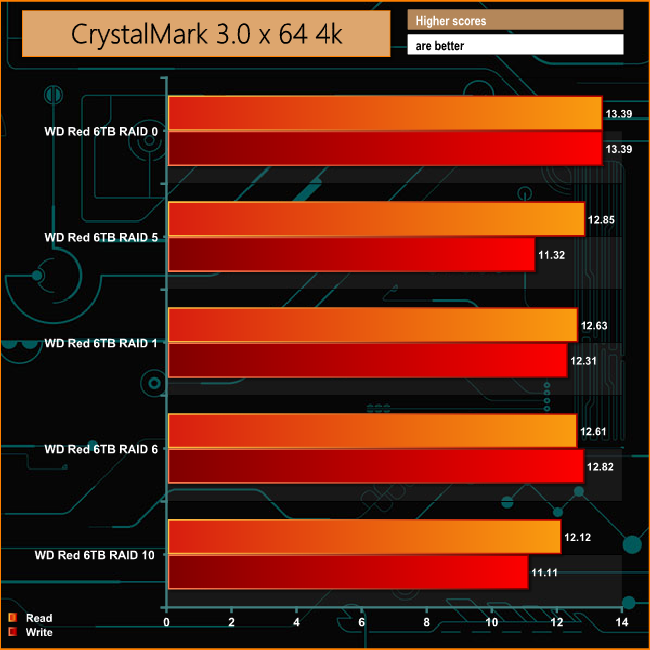 The AS3104T shows pretty good consistency across the differing RAID arrays it supports when dealing with small bity files of everyday office use. Having said that it does fade a little when it comes to dealing with 4K writes in RAID 5 and 10.