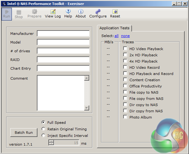 Intel's NASPT (NAS Performance Toolkit ) is a benchmark tool designed to enable direct measurement of home network attached storage (NAS) performance. NASPT uses a set of real world workload traces (high definition video playback and recording, video rendering/content creation and office productivity) gathered from typical digital home applications to emulate the behaviour of an actual application.
