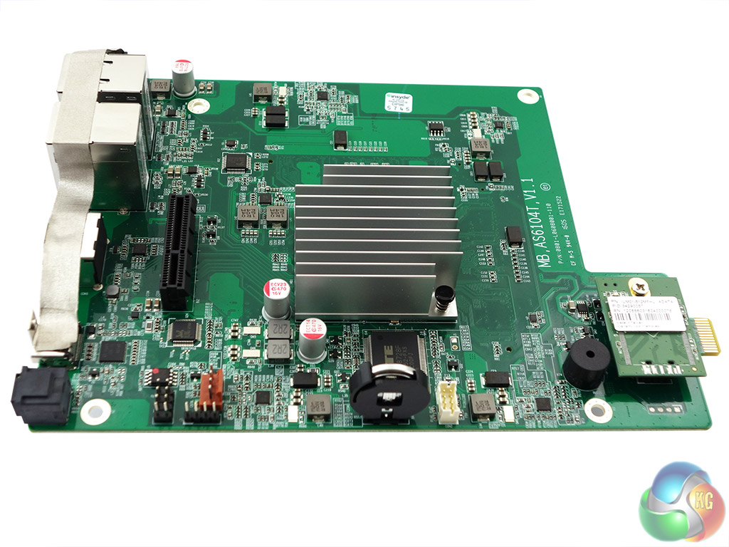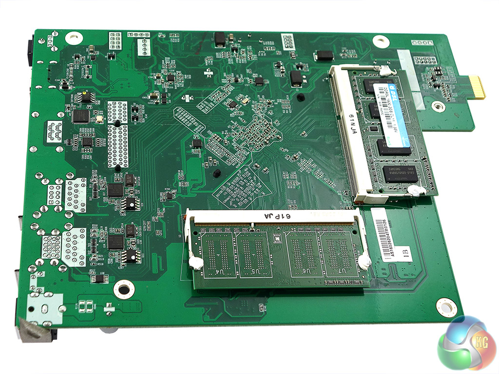 The rear of the motherboard holds the two SO-DIMM slots for the system memory, a pair of Broadcom BCM57781 controllers for the two Ethernet ports and an ASMedia ASM1061 SATA controller which looks after two of the four SATA ports housed in a riser card. There is a second ASM1061 on the riser card to take care of the remaining pair of SATA ports.
