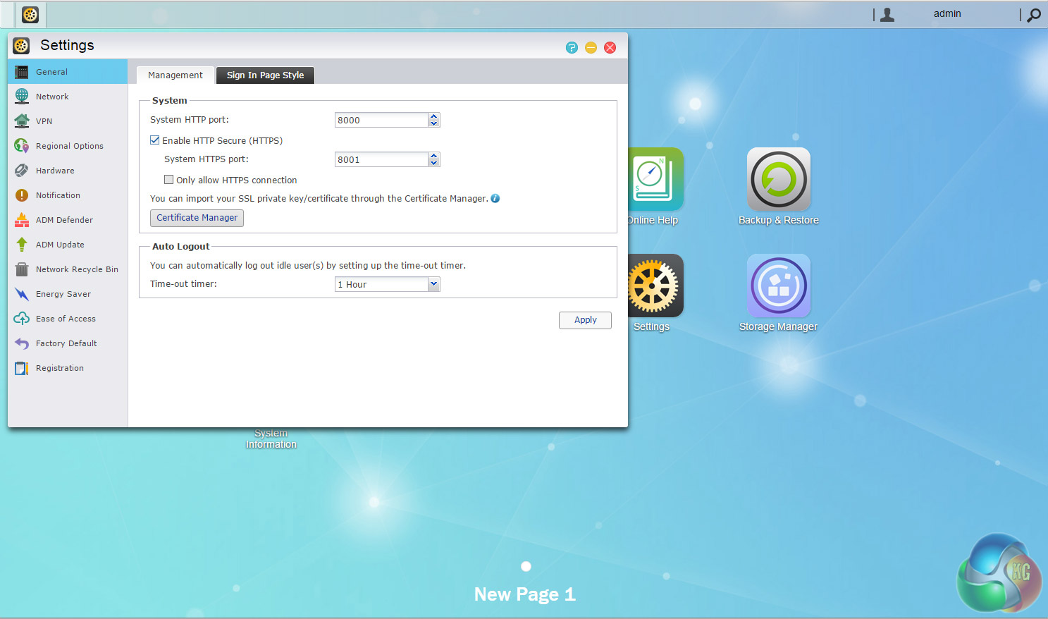 The main ADM page shows the major sections of the OS, although for speed it might be handier to have some form of side menu on this main page as all the other section pages have to help you get to what you are looking for a little quicker.