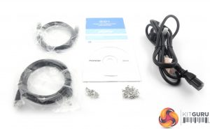 The box bundle is small but everything you need to get started with the AS6208T is included; a pair of Cat 5e Ethernet cables, an installation CD and two full sets of screws to secure eight 3.5in or 2.5in drives.
