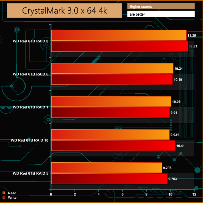 Taking the RAID 0 performance out of the equation, the AS6208T shows pretty good consistency across the arrays in both reads and writes when dealing with the small files sizes of everyday use. There is however a small drop in the read speed in the RAID 5 setup.