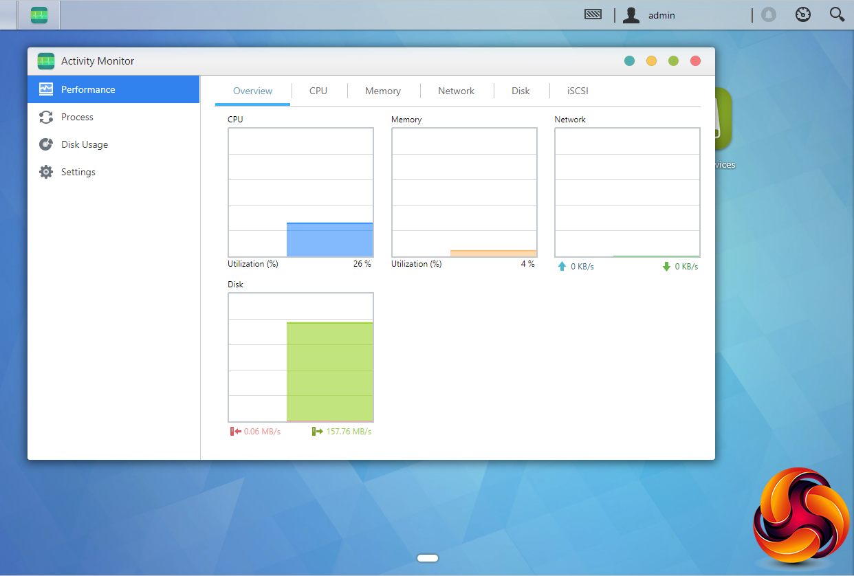 The Activity Monitor has been updated with a new interface and icons and supports real-time monitoring of the NAS system and resources.