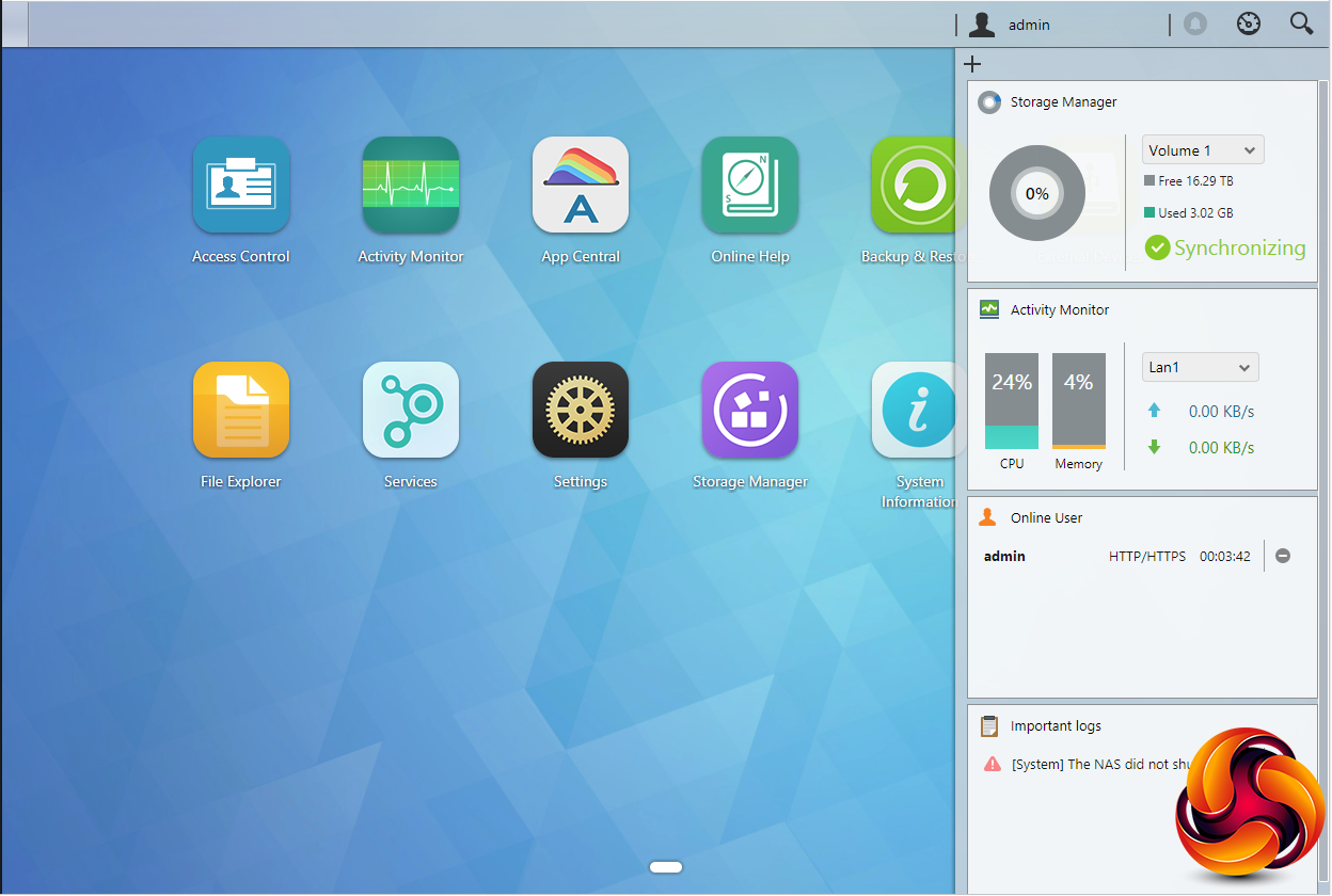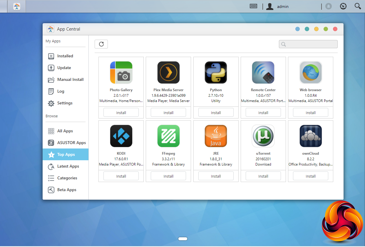 Asustor’s ADM (Asustor Data Master) OS is a constantly evolving GUI (version 3.0.3 RAI4 at the time of writing) and is easy to install, navigate through and is one of the most feature rich around particularly when it comes to add on apps. After you've logged in for the first time, a welcome to ADM guide window pops up. ADM 3.0 sees a fresh new look for the OS and a word of caution, as the new version has a modified file structure you won't be able to roll back a version after upgrading.