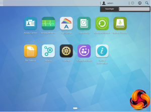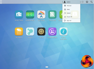 At the top of the main menu window are three icons; admin, tools and search. The admin drop down has five options; personal, sleep, restart, power off and sign out. The personal section is where you can configure the account password, E-mail address, description and ADM language. The search icon links to Searchlight, Asustor's own search tool, designed for running fast and precise searches for files on the NAS. To the left of the search icon is the tools icon. This drops down a number of widgets that display various NAS functions for easy monitoring. With ADM 3.0 these can now be individually tailored to a user's needs including the ability to monitor system status in real time without having to open an app.