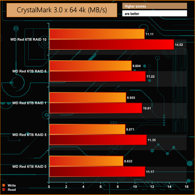 Overall the AS6404T makes a pretty good job of dealing with the small bity files of everyday use, averaging 9.43MB/s for writes and 11.81MB/s for reads for the five arrays tested.