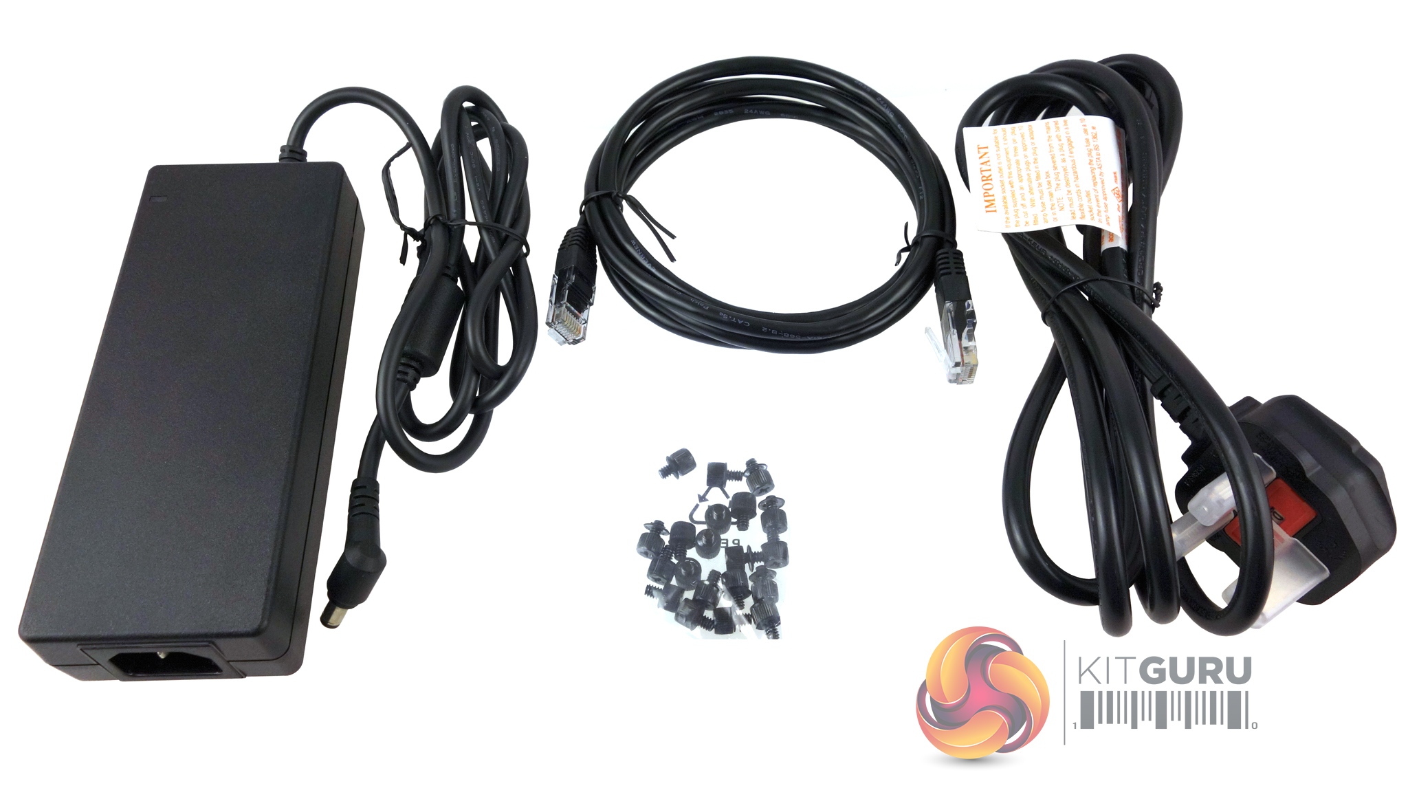 Bundled with the Drivestor 4 is all the bits and bobs you need to get started; Cat 5E Ethernet cable, 90W power adapter (Delta Electronics DPS-90AB-3), 16 thumbscrews for installing four 3.5in drives and a quick start guide.