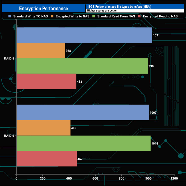 The built-in hardware encryption engine doesn't seem to be that efficient for either reads or writes looking at the effects of dealing with a 16GB folder of encrypted data compared to the same folder without encryption.