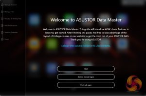 When you log in to the NAS for the first time you are met by the Asustor Data Master (ADM) walk through guide which takes you through some aspects of using the NAS; managing accounts and files, reading and writing files, NAS notifications and Network Defender. Asustor’s ADM (Asustor Data Master) OS is a constantly evolving GUI. The latest version, version 5.0 (we tested the Flashstor 6 Gen 2 with version 5.0.0.RA82) is a major upgrade on previous generations so you won’t be able to roll back the software after upgrading.