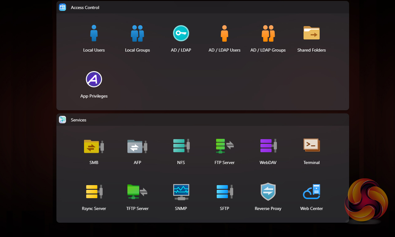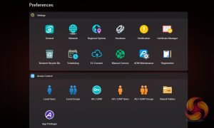 The Preference button gives you easy access to most aspects of the NAS functions. It's divided into three sections; Settings, Access Control and Services.