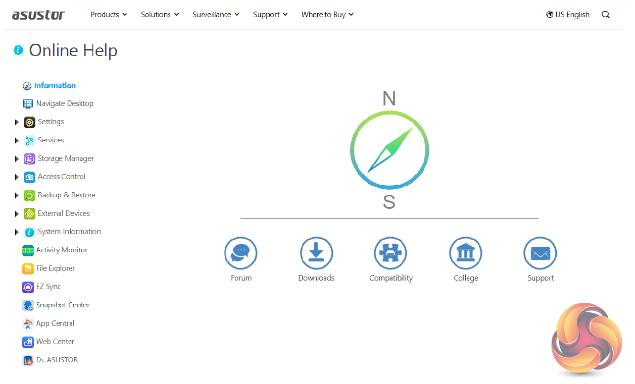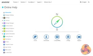 The ADM Help page has five links to various parts of the Asustor website where you can find help and advice if you have problems with the NAS. The Forum button takes you to the Asustor online forum and Downloads is a direct link to the download pages. Compatibility is a useful addition as it takes you to the Asustor Compatibility page, a very handy selection of hardware compatibility tables. Another useful link is to the Asustor College. Here you will find a collection of online easy-to-follow courses to learn all aspects of the NAS and its functions. The final link takes you directly to the Asustor online Support Center.