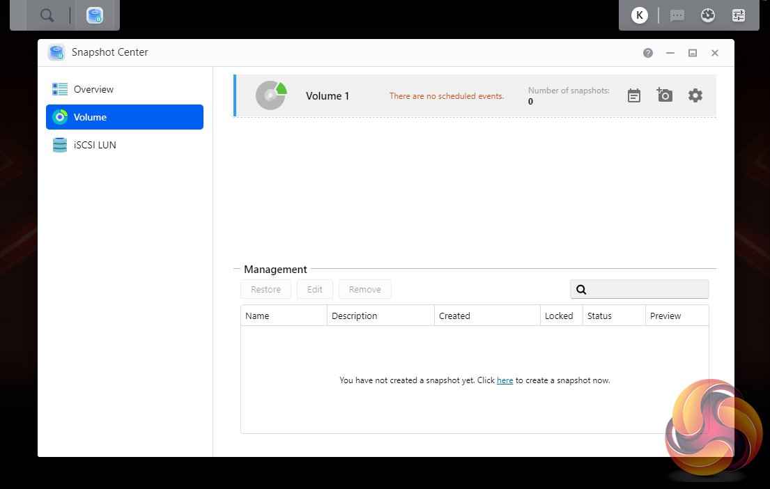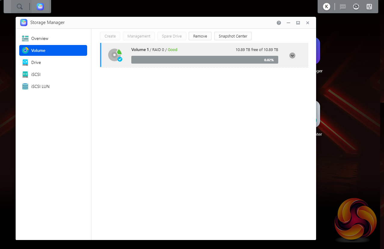 As with any NAS, disk management, RAID and volume creation are at the heart of things. Storage Manager looks after all things disk related including iSCSI LUN creation and snapshot management.