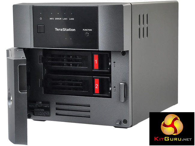The dual LAN connectivity provide failure protection should one go wrong or by using link aggregation to join the two ports together as well as delivering much higher data transfer speeds. One annoying aspect of the TeraStation TS3210DN's design is the lack of any front USB ports, the two that are provided are housed on the rear panel which could be frustrating if the NAS is placed on a shelf or in a cupboard. What makes this even more frustrating is that there appears to be enough room in the top half of the front bezel for at least one port.