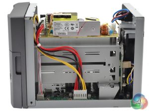 Once the cover is removed, the first thing you are confronted by is the board holding all the power components that sits on top of the drive cage assembly. It's not a particularly elegant solution, but in Buffalo's defence not that many people will be whipping the cover off on a regular basis. The motherboard sits under the drive cage in the bottom of the chassis.