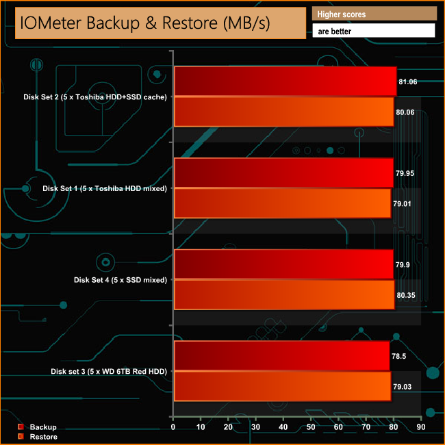 The Drobo 5n isn't a particularly fast NAS but as the IOMeter Backup/Restore tests show its does have high degree of consistency across the different disk groups it was tested with.