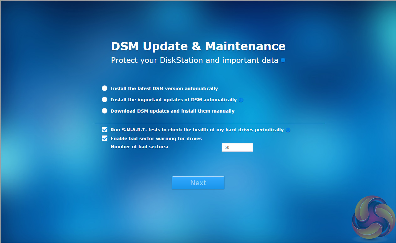 The next stage of the install is to set up the DSM update settings.