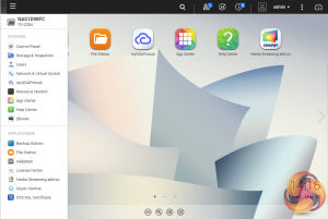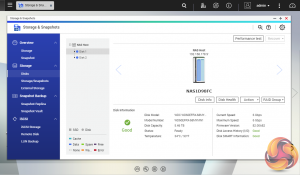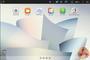 Clicking the icon in the top right of the screen activates the Dashboard page which gives a snapshot of what’s happening with the NAS.