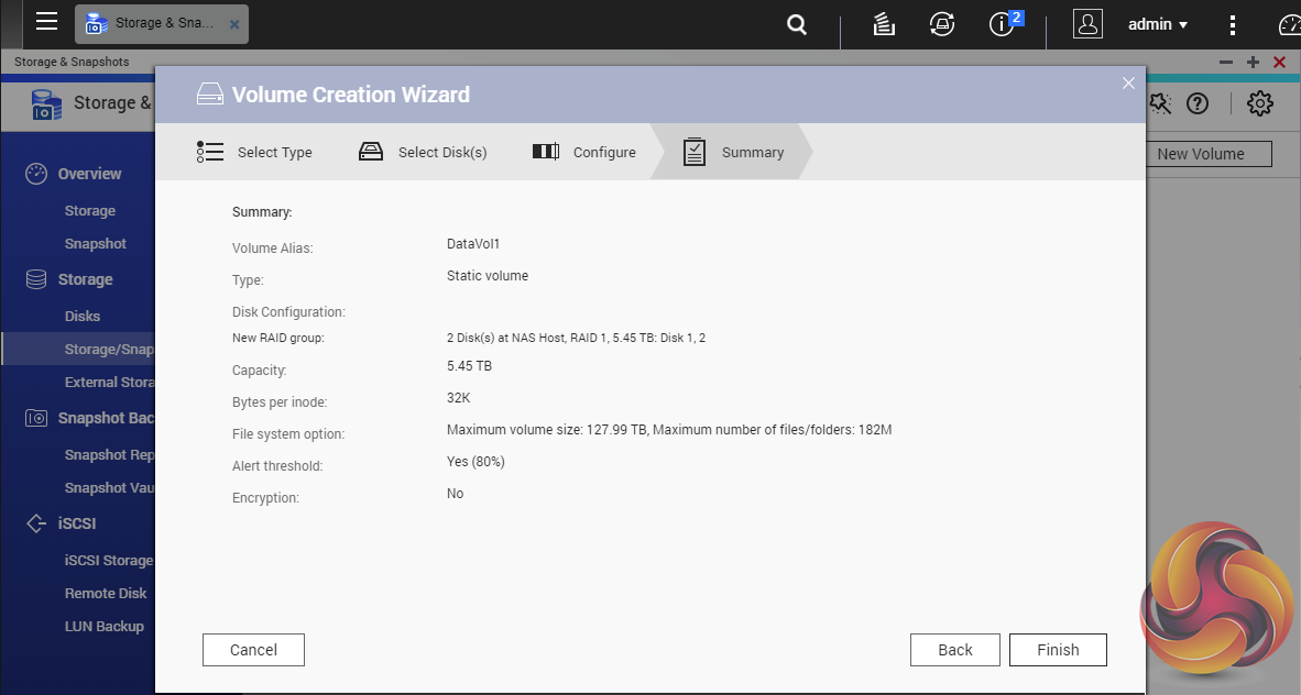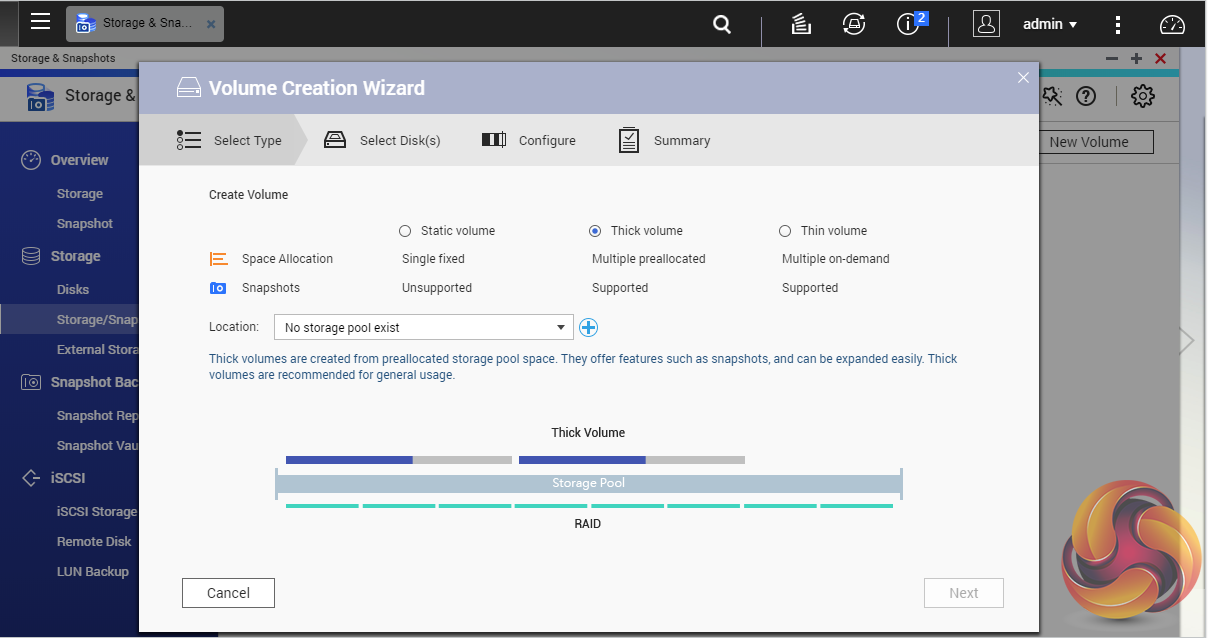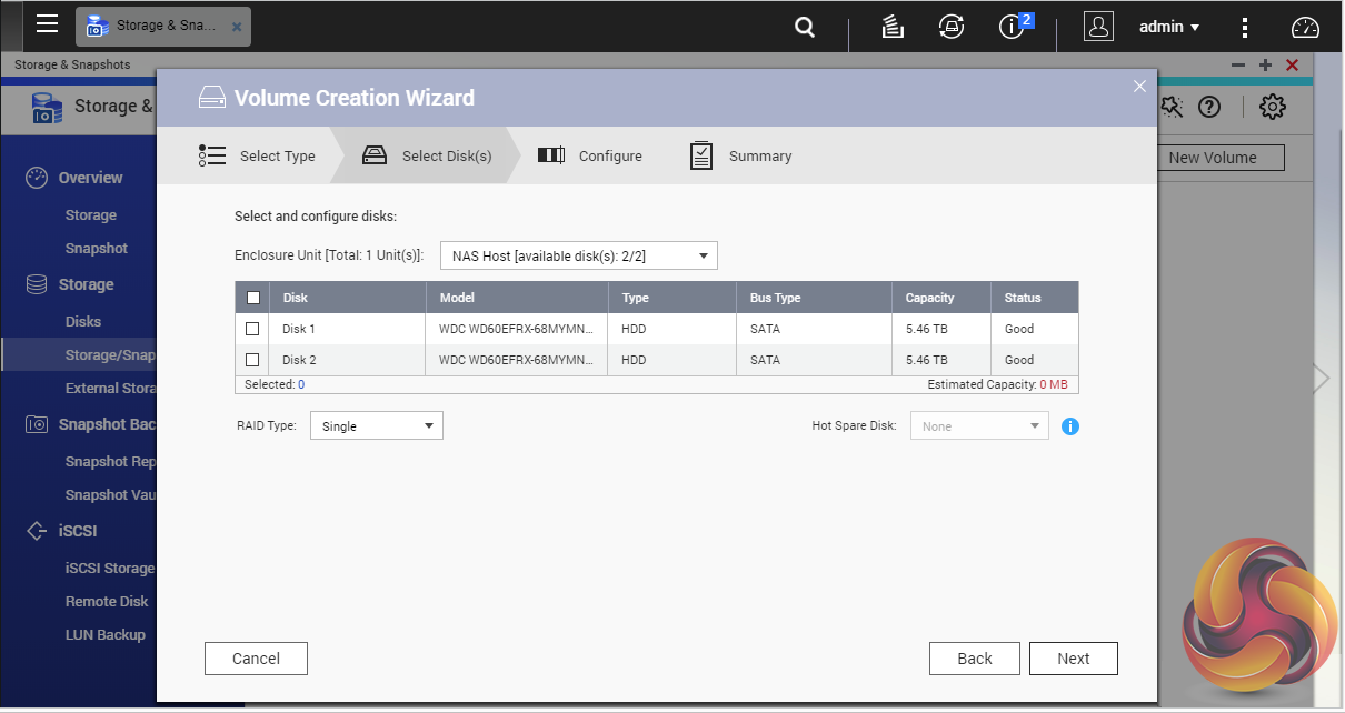 As with any NAS, disk management, RAID and volume creation are at the heart of things. Setting the storage space(s) up is pretty straightforward thanks to the clear and precise step by step setup pages in QTS.