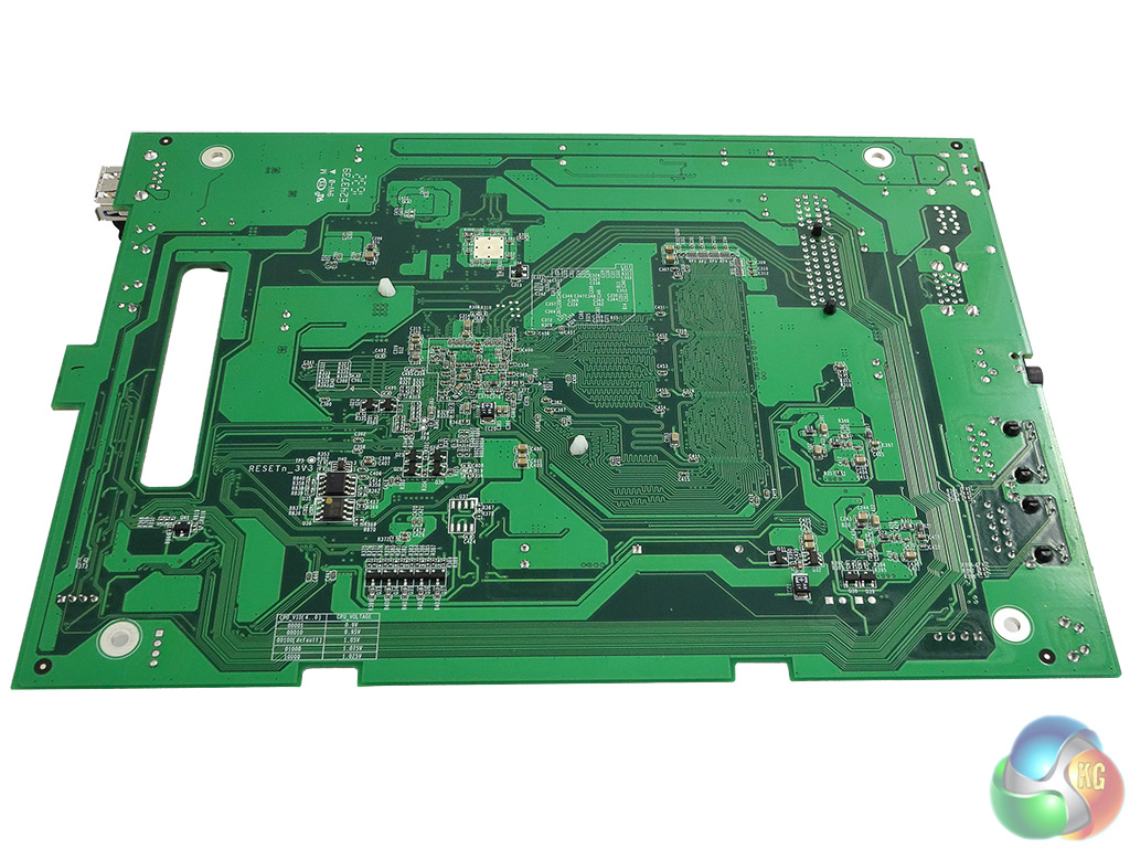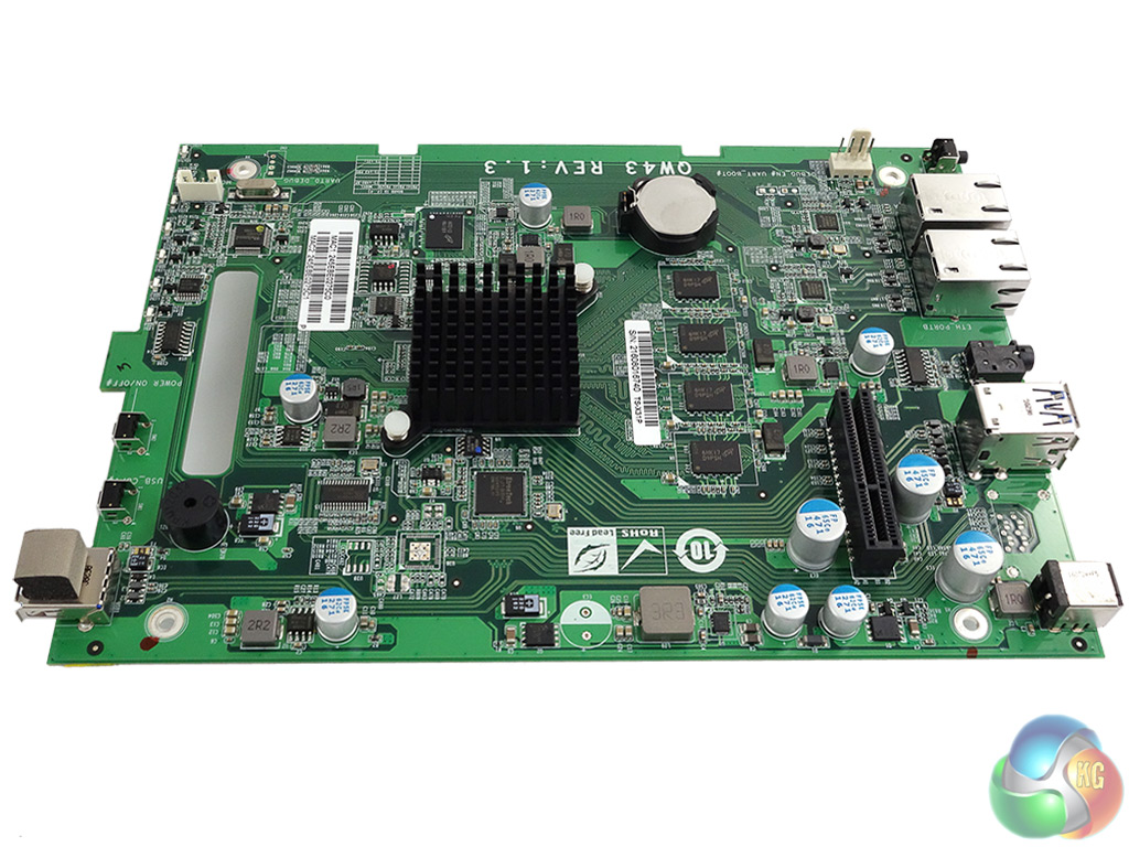 Just above the CPU is the 512MB Micron MT29F4G08ABBDAH4:D NAND chip that holds the system OS. The three USB 3.0 ports; two on the back panel and one in the front bezel are looked after by an EtronTech EJ188H IC while each of the two LAN ports has its own Atheros AR8035-A controller.