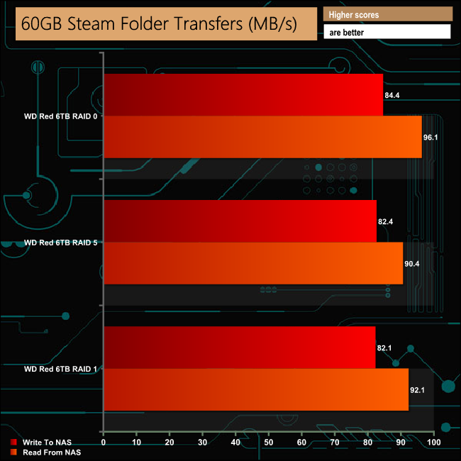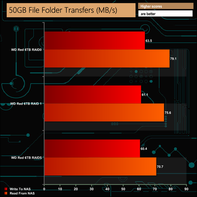 To test real life file/folder performance we use a number of different file/folder combinations to test the read and write performance of the NAS device. Using the FastCopy utility to get a MB/s and time taken for each transfer, the data is written from and read back to a 240GB SSD.