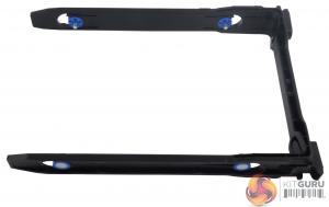 The back of the drive tray is open, allowing the tray side arms to open out a little to get the drive in. Each side arm has a pair of pins that fit into the side mounting holes of the hard drive. It's a little more flimsy than a standard NAS drive tray but it works well enough.