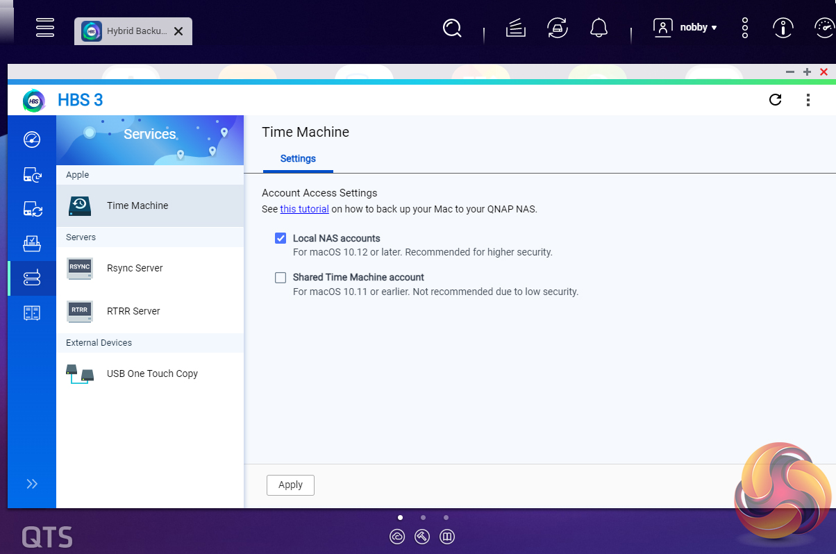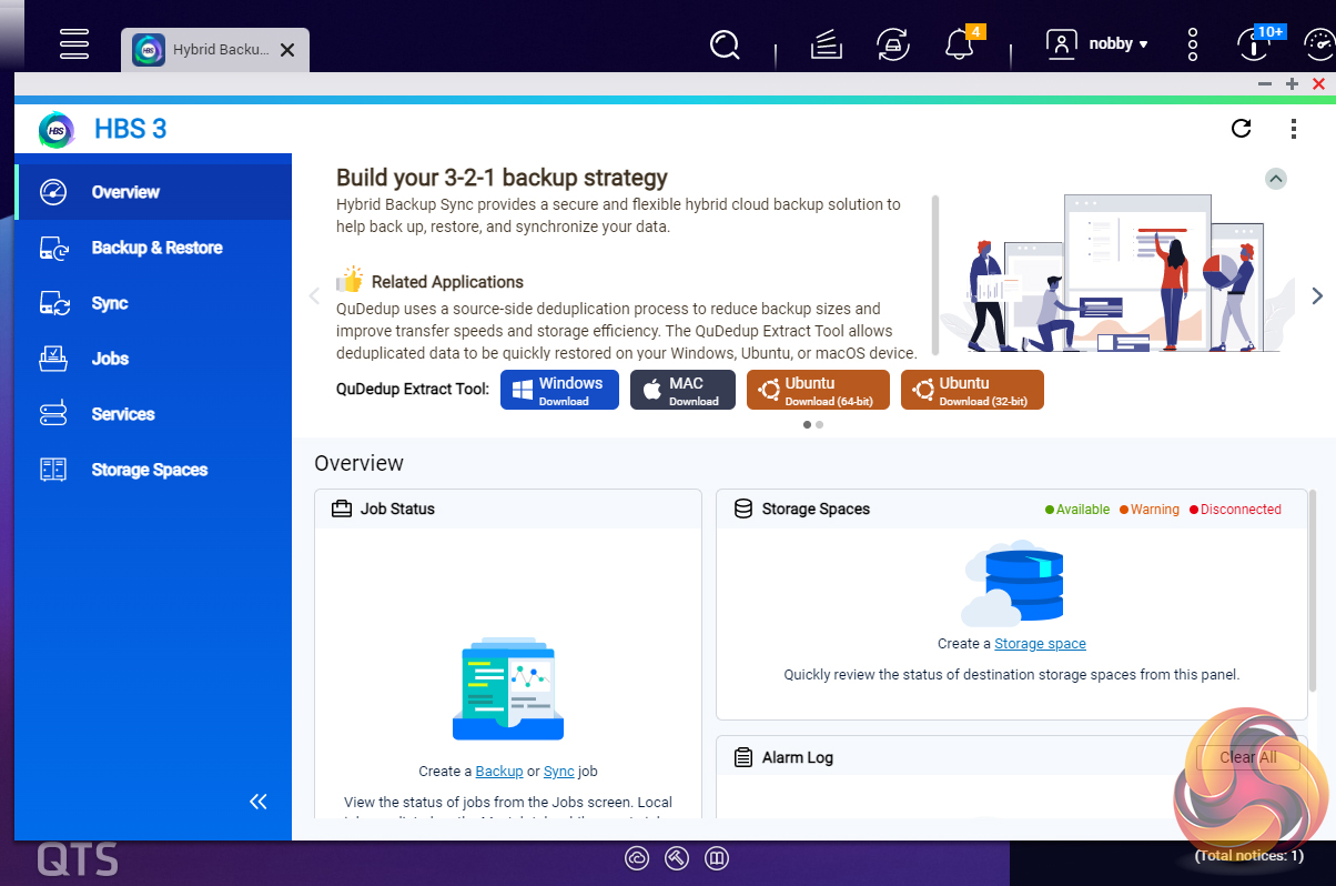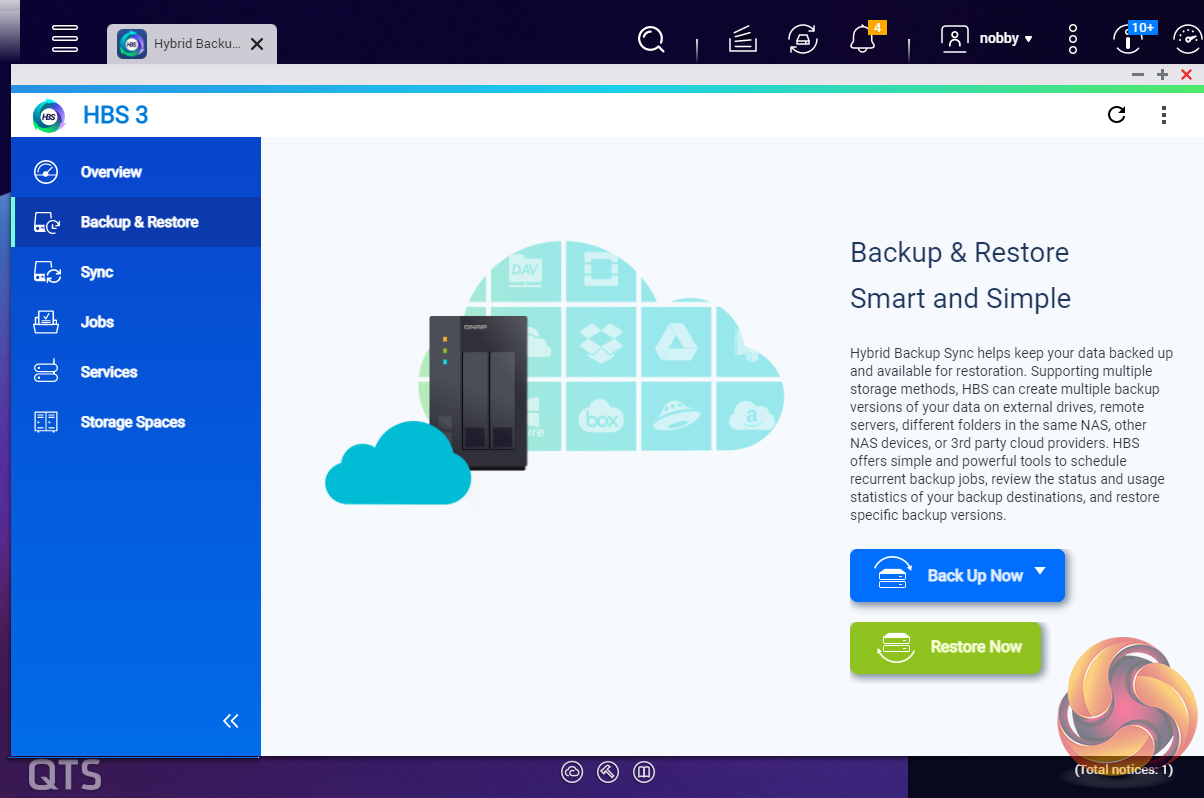 Hybrid Backup Sync (the replacement for the old Backup Station), is a comprehensive data backup and disaster recovery solution which brings together backup, recovery and sync functions allowing data to be backed up to local storage devices, cloud services or remote servers. The One-Touch button on the front bezel can be set up to either upload or download files/folders or backup the NAS to an external USB drive. Setting up what you want the button to do is done via Hybrid Backup Sync.