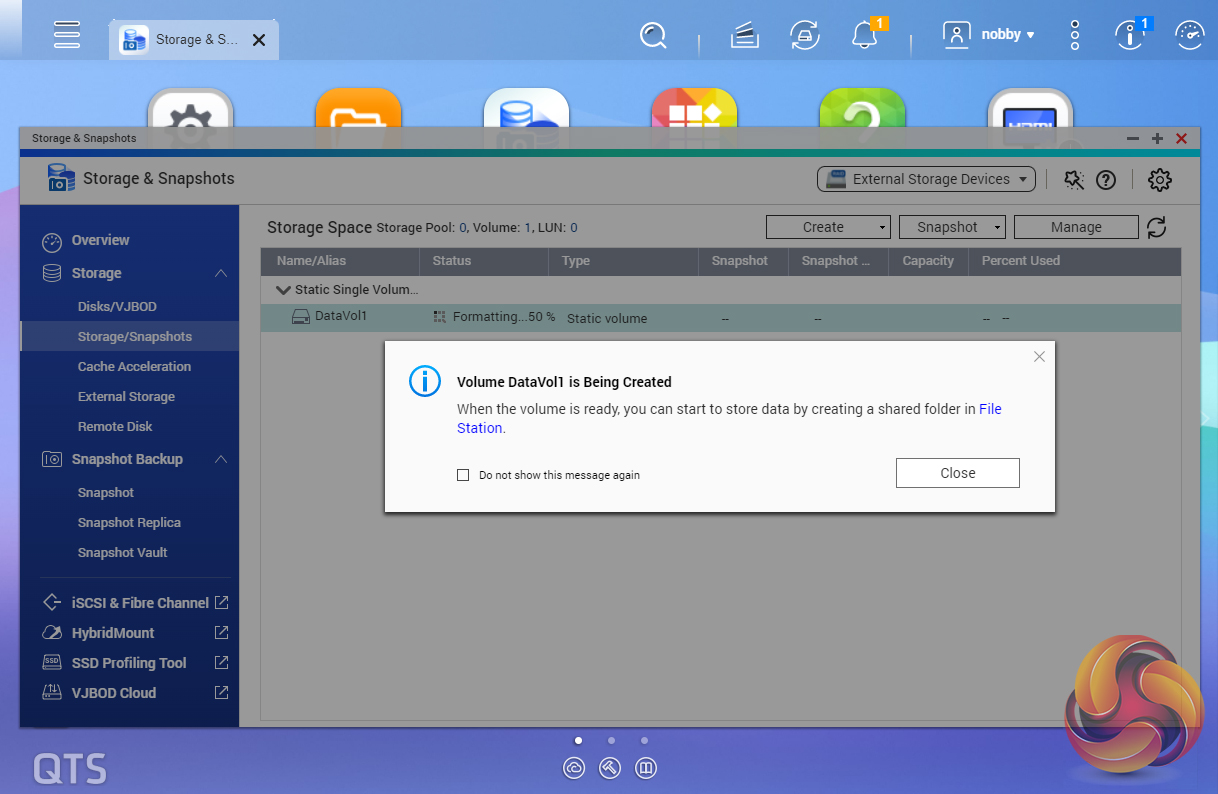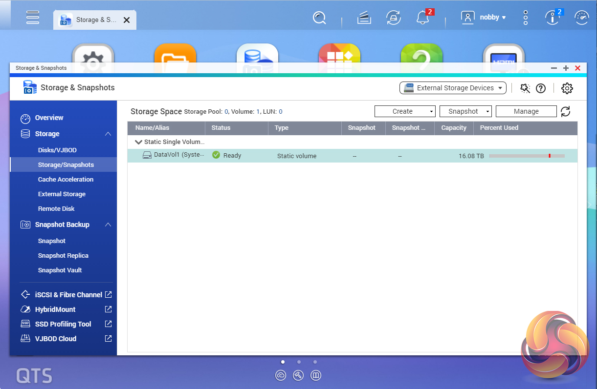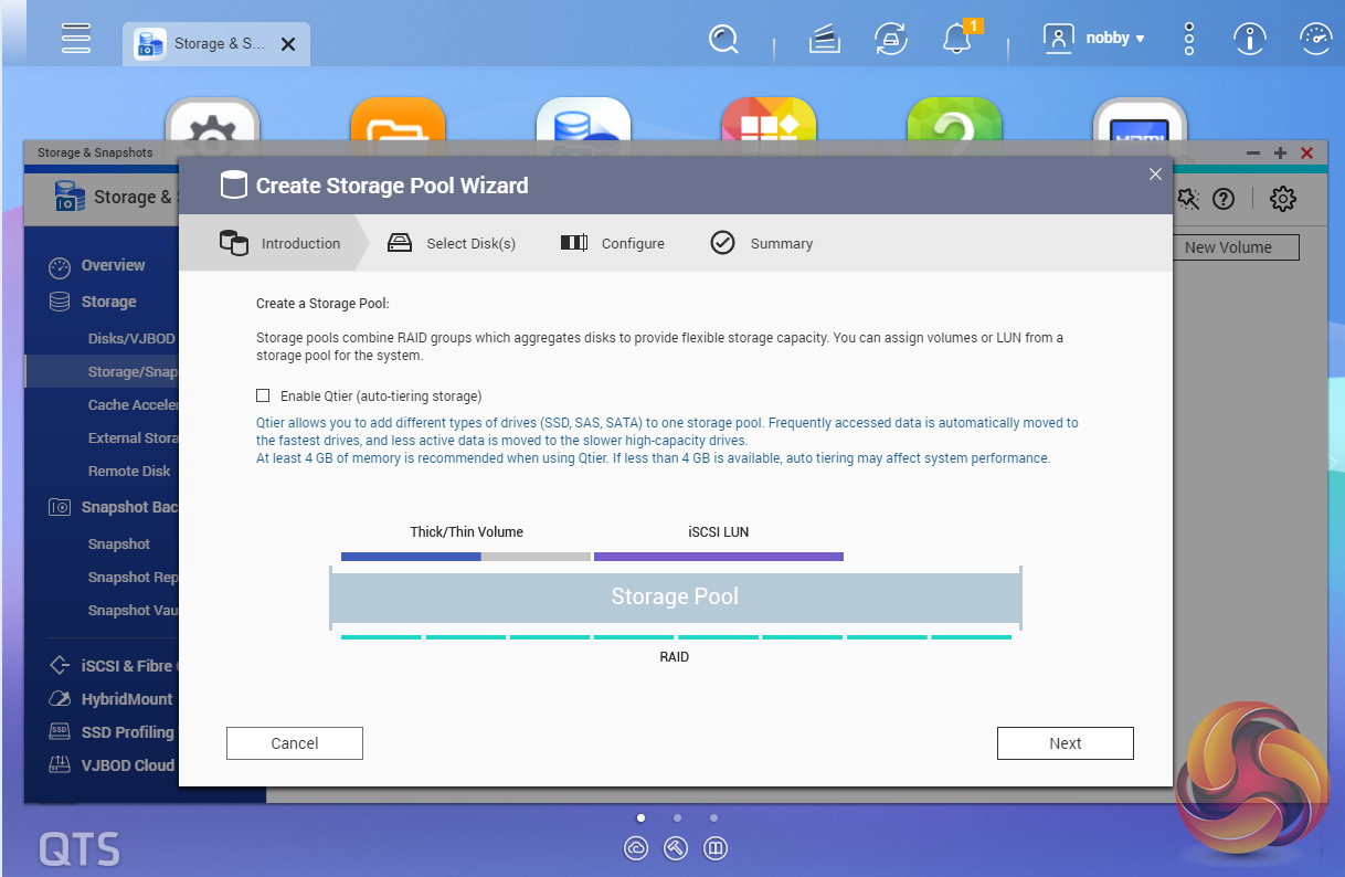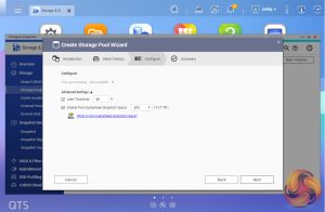 As with any NAS, disk management, RAID and volume creation are at the heart of things. Setting up storage pools and volumes up are pretty straightforward thanks to the clear and precise step-by-step setup pages and wizards in the QTS Storage & Snapshots Manager.