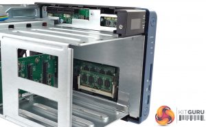 To access the two SO-DIMM slots, all hard drives need to be removed as well as the cover. Access to these slots is via an open panel in the drive cage, it's a little fiddly to access but doesn't present any major problems.