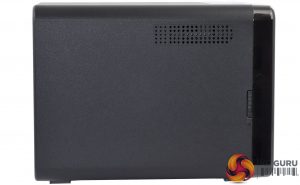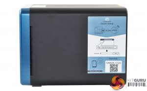 On the front panel above the drive cage is a very small OLED display that displays information on the network, system, disks and volumes and by using the two (enter and select ) buttons it also enables changes to be made to network settings. Under this screen sit four tiny drive activity LEDs.