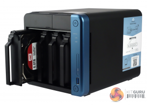 The TS-453Be supports a PCIe 2.0 x2 slot which sits at the top rear edge of the motherboard and can be accessed with the cover removed. The slot can be used to house a 10GbE network, WiFi, USB 3.1 cards or one of QNAP’s QM2 cards. There are a range of QM2 cards that feature dual M.2 slots and/or 10GbE connectivity supporting SSD caching and QNAP’s Qtier auto-tiering technology for improved NAS performance.