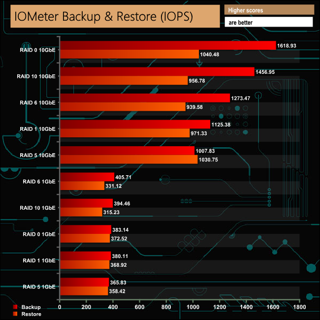 We set IOmeter up (as shown above) to test both backup and restore performance on a 100GB partition.