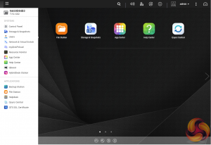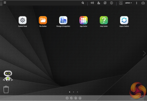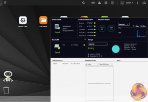 Clicking the icon on the top right of the screen activates the Dashboard page which gives a snapshot of what’s happening with the NAS.