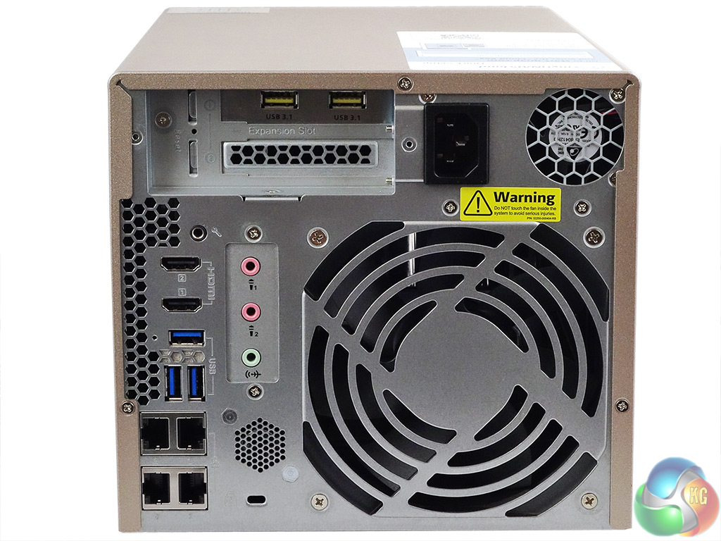 The rear panel of the TVS-473-16G is about as complex as you will see on a “desktop” NAS design and it shows just what today's units are and the TVS-473-16 in particular, capable of supporting. The panel is dominated by the grill for the Y.S Tech FD121225LB 120mm cooling fan. To the side of the grill sit the majority of the I/O ports.