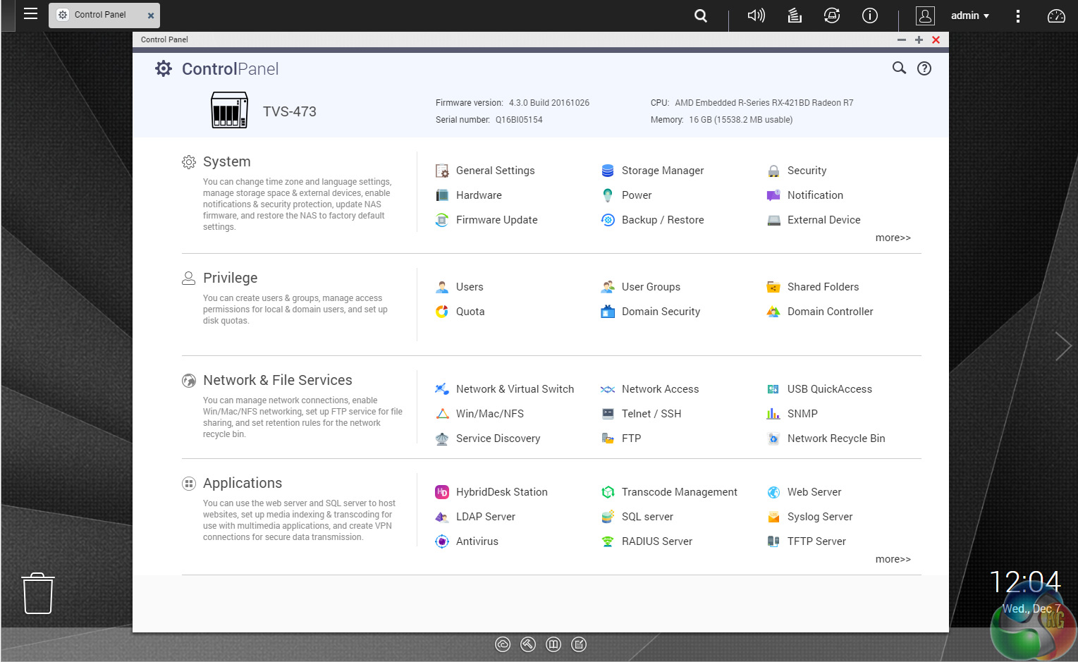 The Control panel has been revamped to make it easier to access all the various functions of the NAS which are neatly divided into groups; System Settings, Privilege Settings, Network Services etc.
