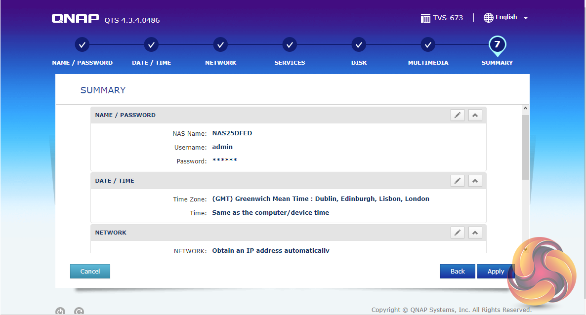 Once the TVS-673e has finished setting up, you can then get access to the log in screen.