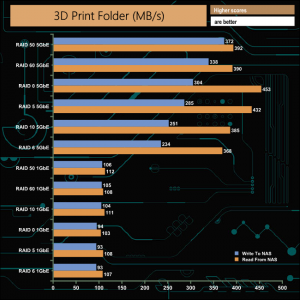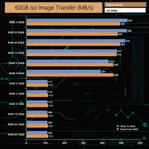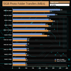 To test real-life file/folder performance we use a number of different file/folder combinations to test the read and write performance of the NAS device. Using the FastCopy utility to get an MB/s and time taken for each transfer, the data is written from and read back to a 240GB SSD.