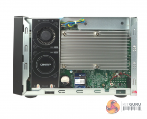 Besides the two 120mm system cooling fans, there are two 60mm blower fans and a massive heatsink to keep the CPU nice and cool. Even with this many fans, the TVS-872N is very quiet during normal operations.
