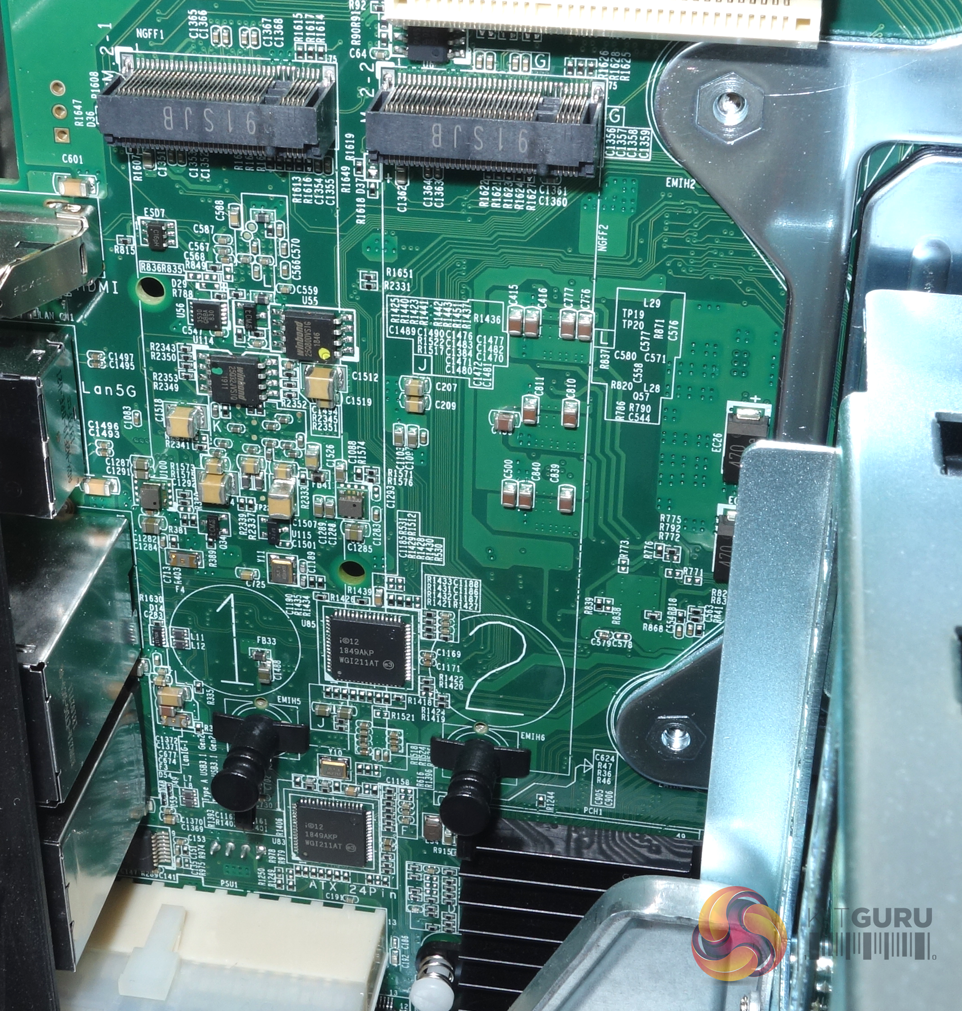 The TVS-872N comes with a pair PCIe 3.0 slots. The top one runs at x16 speed and is controlled by the CPU while below that sits the x4 slot, looked after by the PCH. If you in any doubt which one's which, the motherboard is clearly marked to show you.